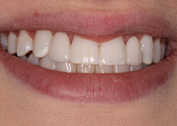 Possibly one of the fastest and most comfortable cosmetic dentistry services, porcelain veneers are used to conceal any number of smile flaws including chips, cracks, stains, gaps, and more in two short visits. A veneer is a thin sheath of dental grade porcelain that is fitted over the fronts of teeth to conceal flaws and leave patients with beautiful smiles. The procedure typically requires two appointments. During the first visit, a minimal amount of enamel is removed from the surface of patients’ teeth to accommodate the veneer allowing it to blend seamlessly into the smile. Once teeth are prepared, we capture dental impressions and place temporary veneers to protect prepared teeth. Our dental lab uses the impressions to craft customized veneers, and patients return to our Bedford practice for a second appointment to exchange their temporary for the permanent porcelain veneers. With proper care, this stain resistant porcelain restoration can last for ten or more years.
